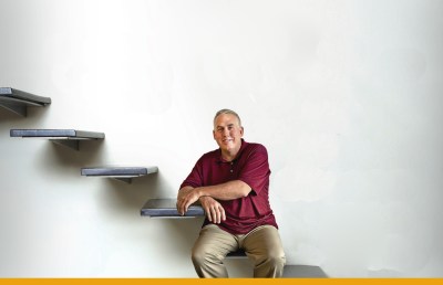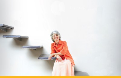 (Due to the confidential nature of ad concepts, I have stripped out all of the things in the ad but the woman and stairs.)